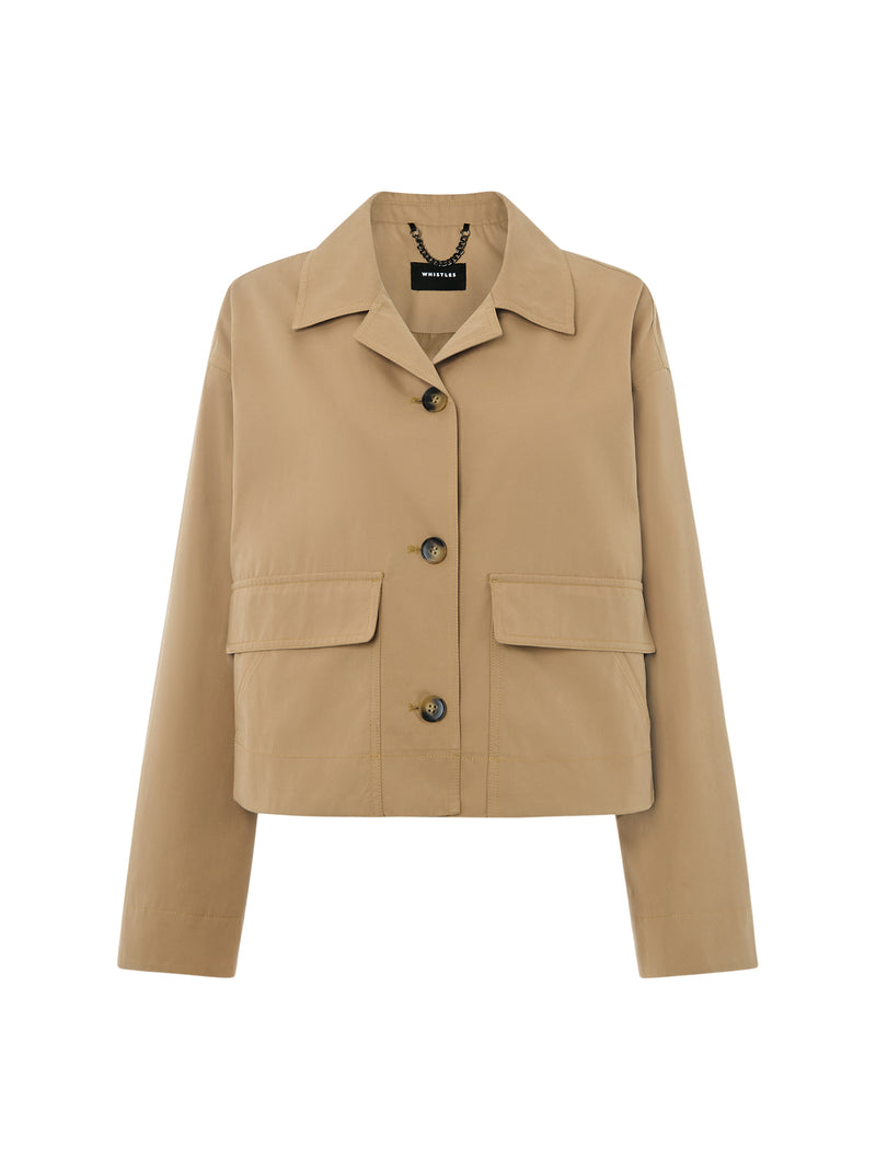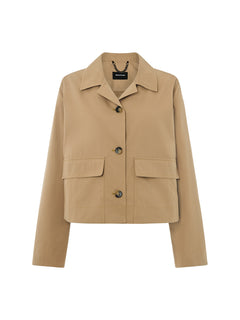 This short cotton trench jacket offers a lightweight and breathable option for transitional weather. Crafted from soft cotton, it provides comfort and easy layering, while its classic design ensures versatility for various occasions. Ideal for adding a timeless touch to any outfit, this jacket combines practicality with stylish simplicity.