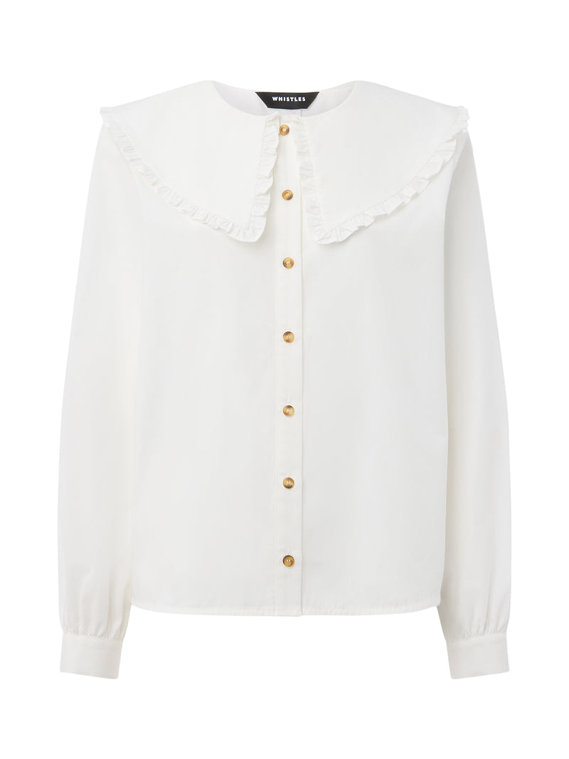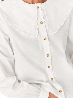 The White Cotton Collar Detail Top features a classic design with a crisp collar and button-through front, offering a timeless and polished look. Made from breathable cotton, it ensures comfort throughout the day. This versatile top is ideal for layering or wearing on its own, suitable for both casual and formal occasions.