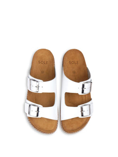 The Gerti Footbed Sandals by SOLE combine soft white faux leather with cushioned soles for lasting comfort. Lightweight and minimal, they’re an easy choice for warm-weather dressing.