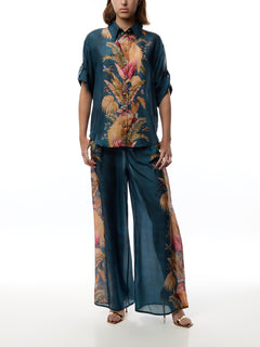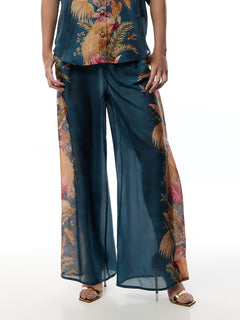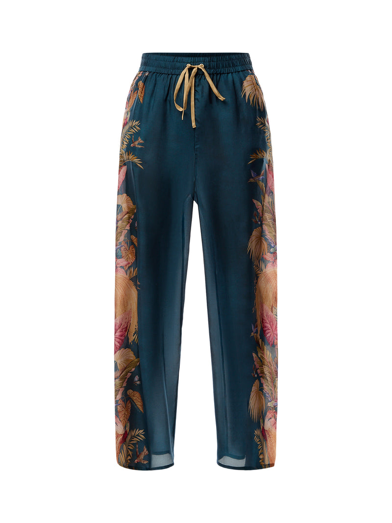 Elevate your summer style with the Ascension Relaxed Pant. Made from 100% silk habutae fabric, this wide leg pant features a self-tie waist and functional welt pockets. The relaxed silhouette and placement printed detailing on the sides add a touch of sophistication to your look.