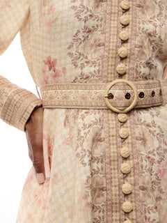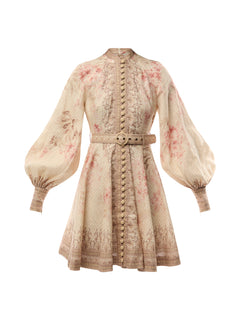 The Illuminate Buttoned Mini Dress is a must-have piece from the Spring 2025 collection, Illumination. The dress features a beautiful coral floral placement print and long blouson sleeves with functional zipper cuffs. Made from high-quality linen, the raffia buttons down the centre front add a touch of unique detail. Perfect for adding a pop of colour to your wardrobe.