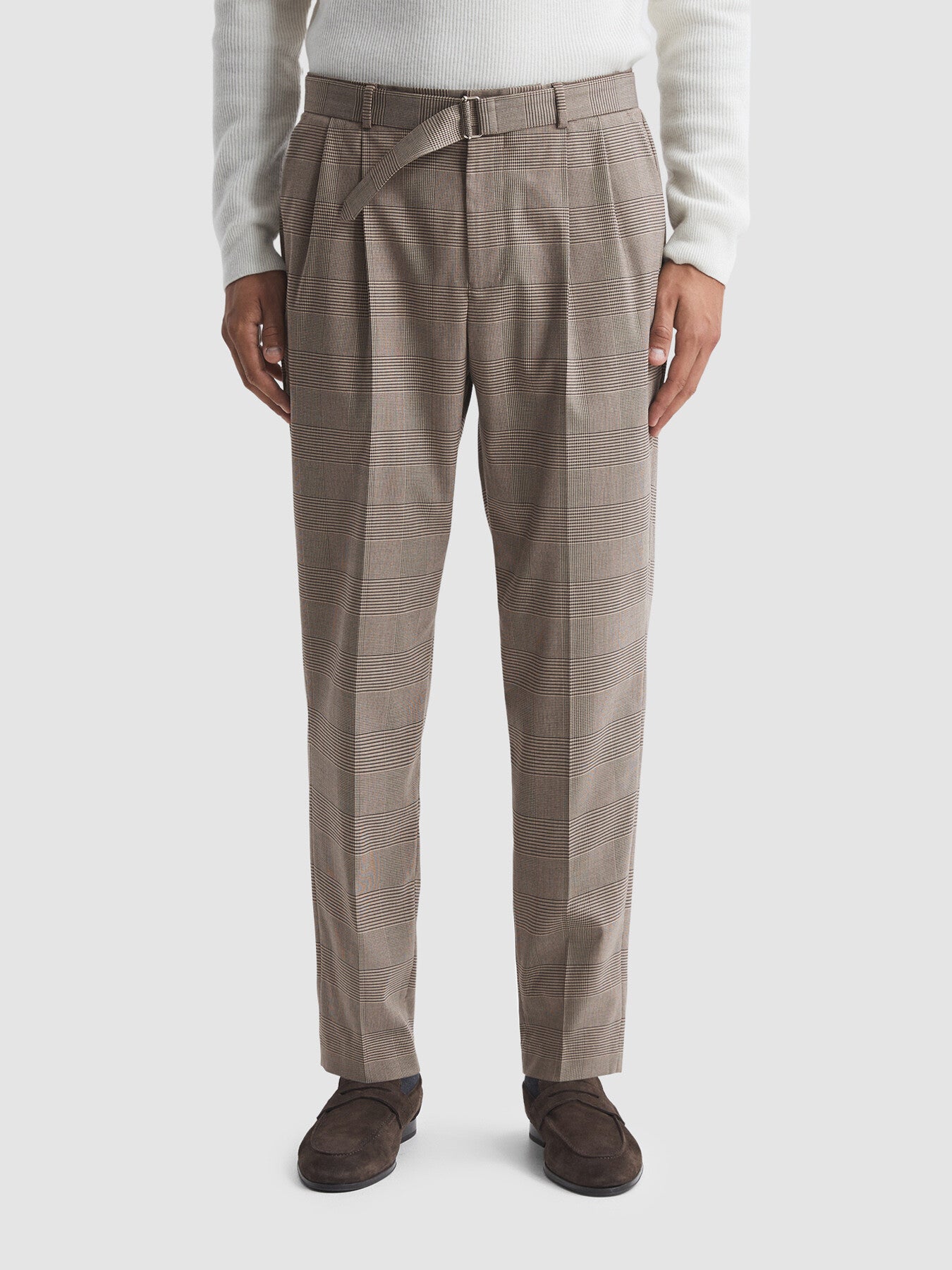 Mid BrownRail Prince Of Wales Check Belted Trousers