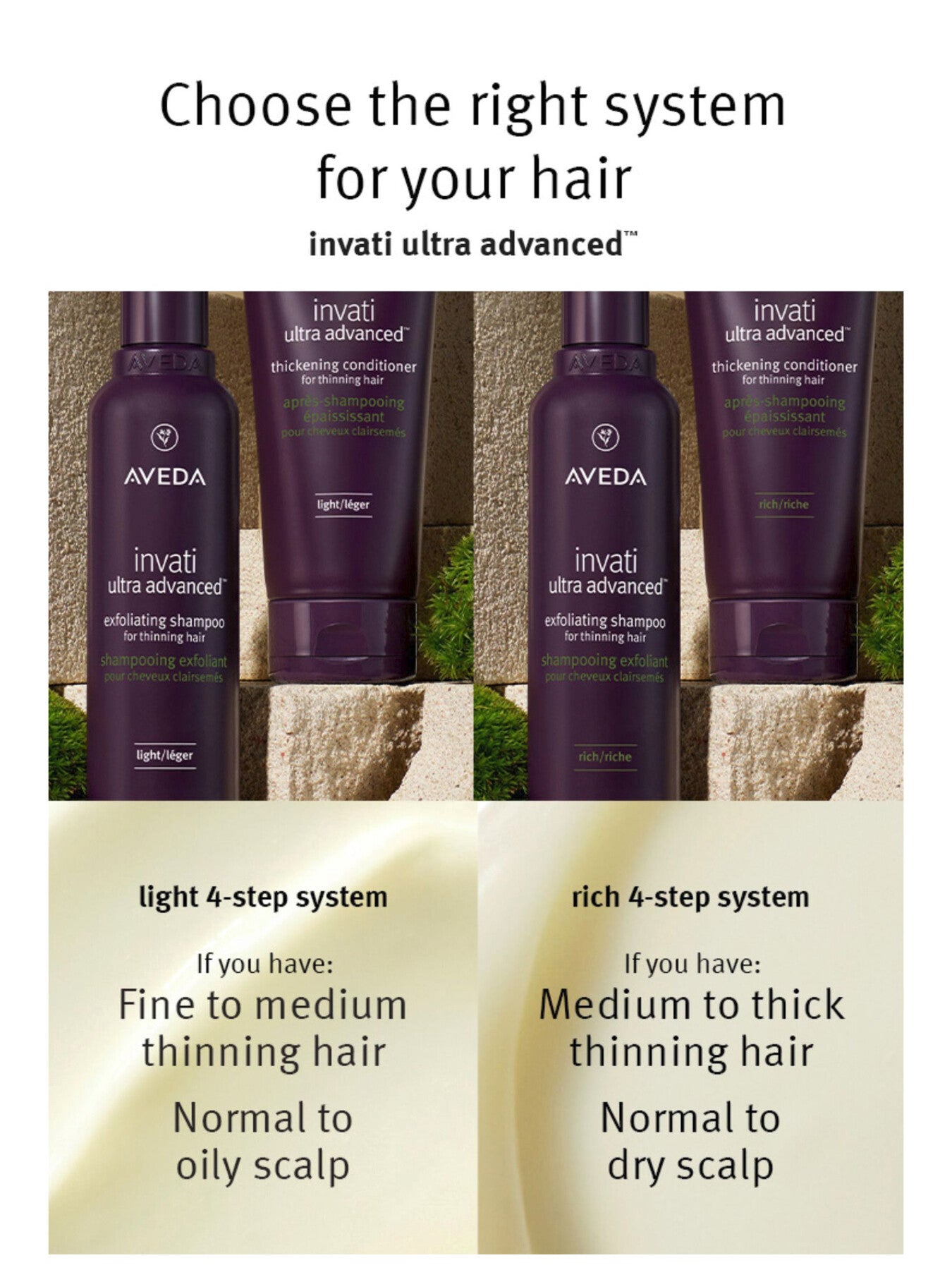 Reduce hair fall by 77% due to breakage with our latest advancement for thinning hair: the invati ultra advanced 4-step system. This nourishing conditioner for thinning hair is step two of your routine. The formula detangles, thickens the look of, and helps strengthen fragile, thinning hair — helping you keep the hair you have, longer.Dermatologist evaluated.
