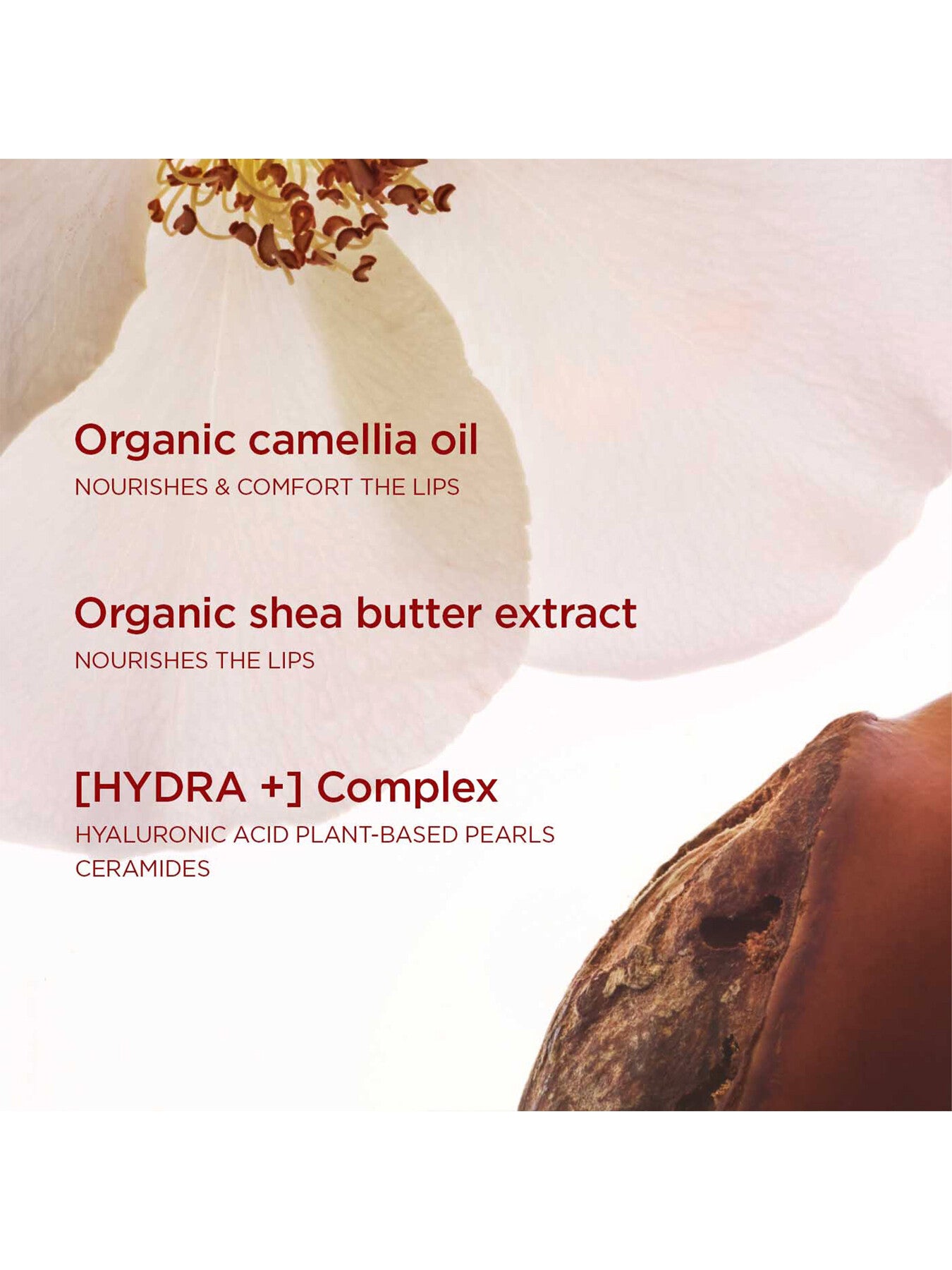 - Ingredient List: HYDROGENATED VEGETABLE OIL. COCO-CAPRYLATE/CAPRATE. CELLULOSE. OLEIC/LINOLEIC/LINOLENICPOLYGLYCERIDES. CI 77891/TITANIUM DIOXIDE. DIMETHICONE CROSSPOLYMER. JOJOBA ESTERS. HELIANTHUS ANNUUS(SUNFLOWER) SEED WAX. CI 77491/IRON OXIDES. COPERNICIA CERIFERA CERA/COPERNICIA CERIFERA (CARNAUBA) WAX/CIREDE CARNAUBA. BUTYROSPERMUM PARKII (SHEA) BUTTER. CAMELLIA OLEIFERA SEED OIL. ETHYLHEXYL PALMITATE. CI45410/RED 28 LAKE. CI 42090/BLUE 1 LAKE. PARFUM/FRAG