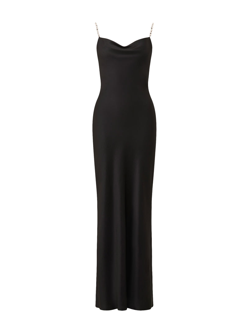 The Presley Diamante Strap Satin Maxi Dress features a luxurious satin fabric that offers a smooth and elegant finish. Its maxi length provides graceful coverage, while the diamante straps add a touch of sparkle and sophistication. This dress is perfect for formal occasions or stylish evening wear.