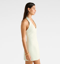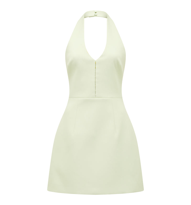 The Ricki Halter Neck Hook and Eye Mini Dress features a sleeveless design with a halter neck and hook-and-eye fastening. Its mini length offers a chic and flattering silhouette, making it a stylish choice for warm weather or evening occasions.