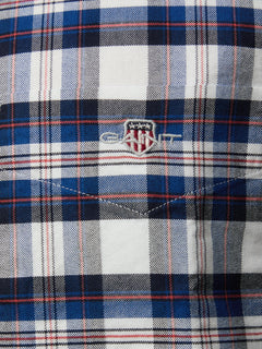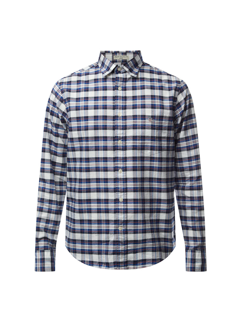 Crafted in a classic poplin fabrication, this shirt is designed with a regular, untucked fit and features an all-over yarn-dyed checked pattern.