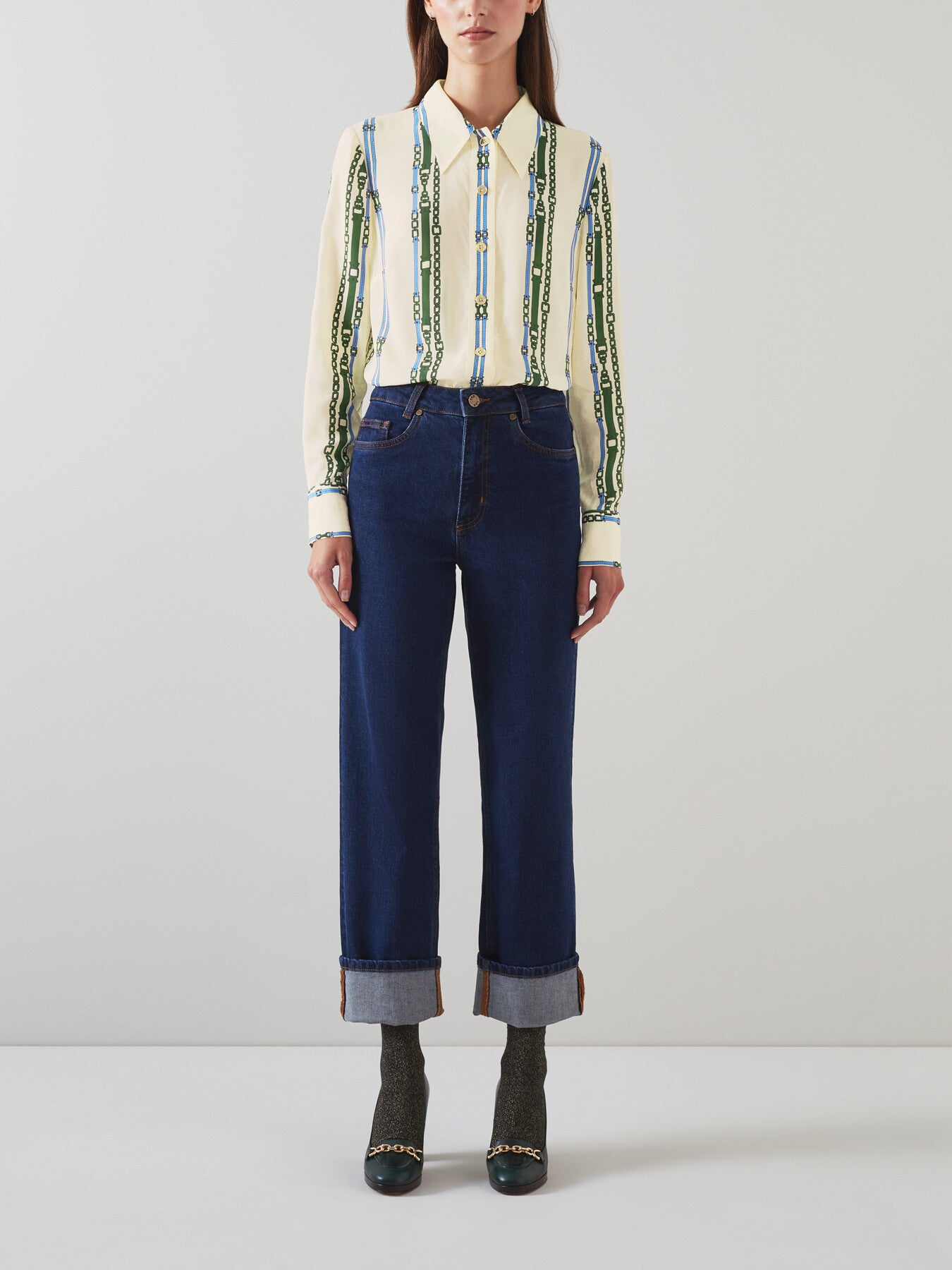 Hardy Cream Belt Print Viscose-Silk Blend Shirt