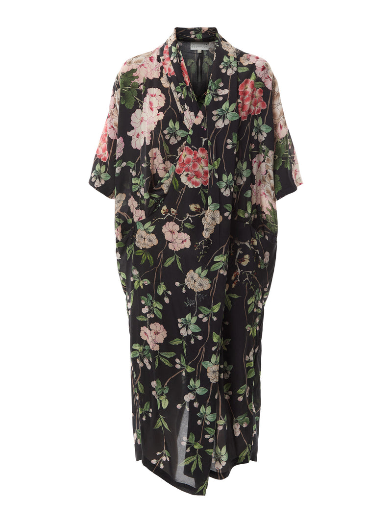 Showcasing beautiful cherry blossom flowers trailing down in a gentle waterfall effect, this delicate floral print represents the coming of spring and brings a sense of vitality and vibrancy to this season’s collection.This cowl neck, V-line dress features a pin tuck front, and pockets and can be styled loose or worn with a belt to create a beautiful silhouette.
