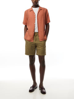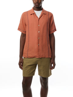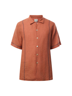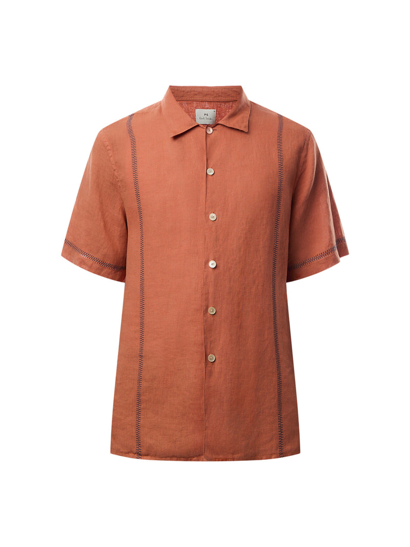 Made from 100% linen for a lightweight and breathable finish, this garment-dyed washed short-sleeve shirt features contrasting blanket-stitch detailing on the body and sleeves - for an added twist. Cut for a casual shape, this shirt is finished with a relaxed collar and straight hem.