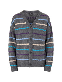 This Stripe Wool Cardigan in black combines classic style with warmth and comfort. Crafted from soft wool, it features a button-through front for easy wear and a stylish layered look.