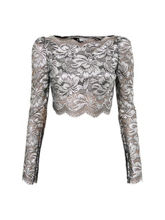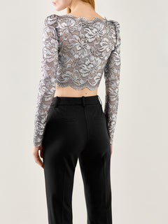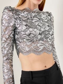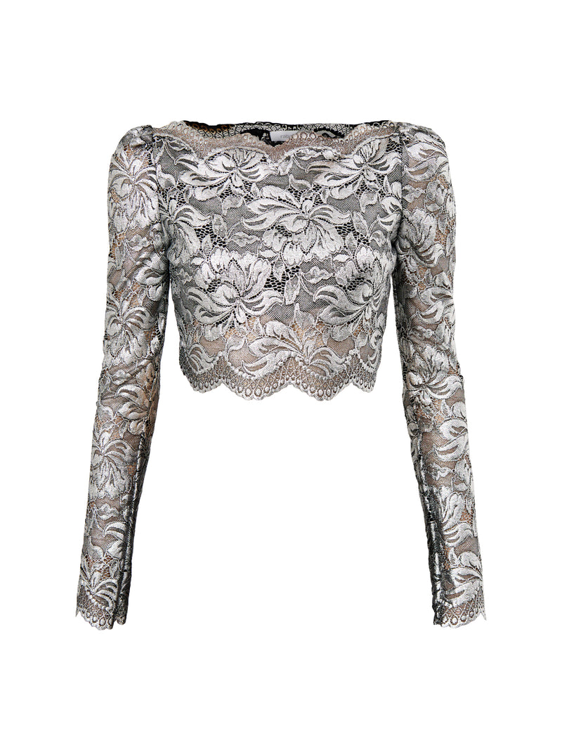 Haut Stretch Lace Top Off Shoulder Black Silver