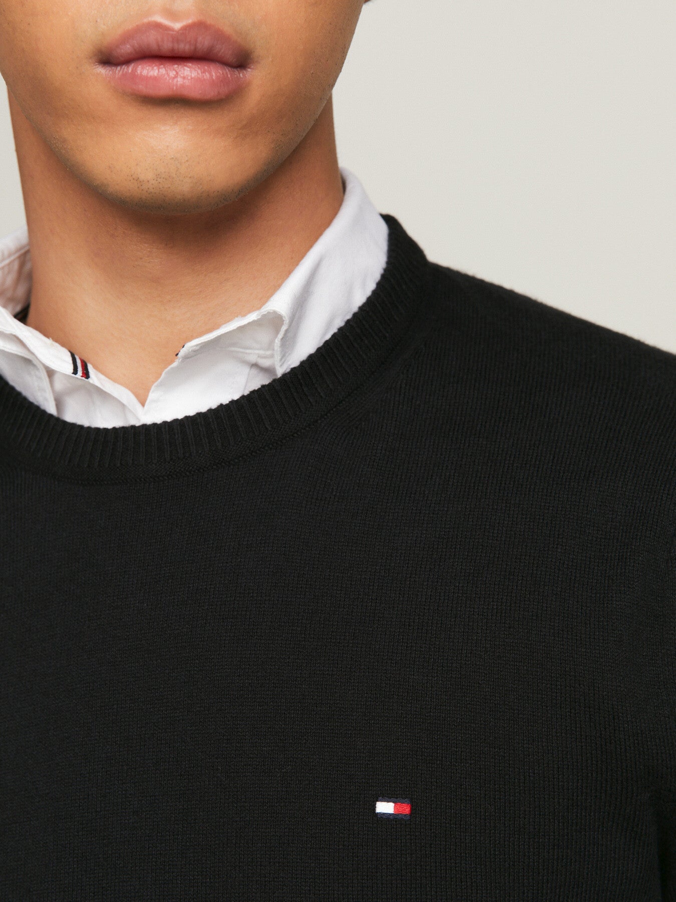 Regular fit. - Crew neckline. - Rib knit collar, cuffs and hem. - Fine knit design. - Signature TH flag on chest. - Recycled wool and cashmere blend.