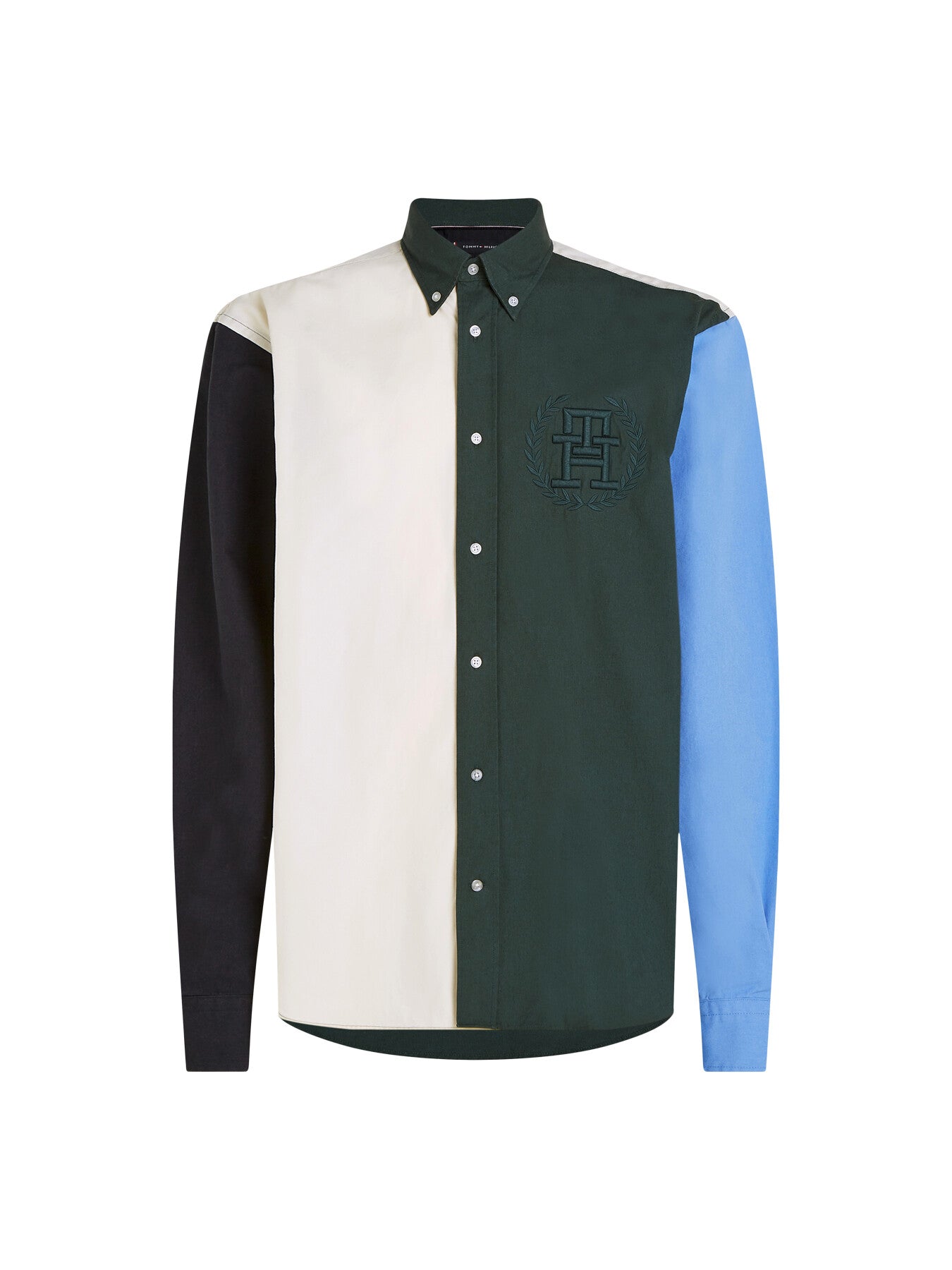 A colour-blocked design and intricate logo embroidery elevate this pure cotton shirt, making it ideal for smart-casual occasions.Highlights: Pure cotton Sourced with the Better Cotton Initiative Colour-blocked design Button-down collar Rounded two-button cuffs Archive crest logo embroidery on chest Hilfiger monotype logo hanging loop Tommy Hilfiger flag embroidery on sleeveShape & fit Regular fit Our model is 1.86m and wears size M