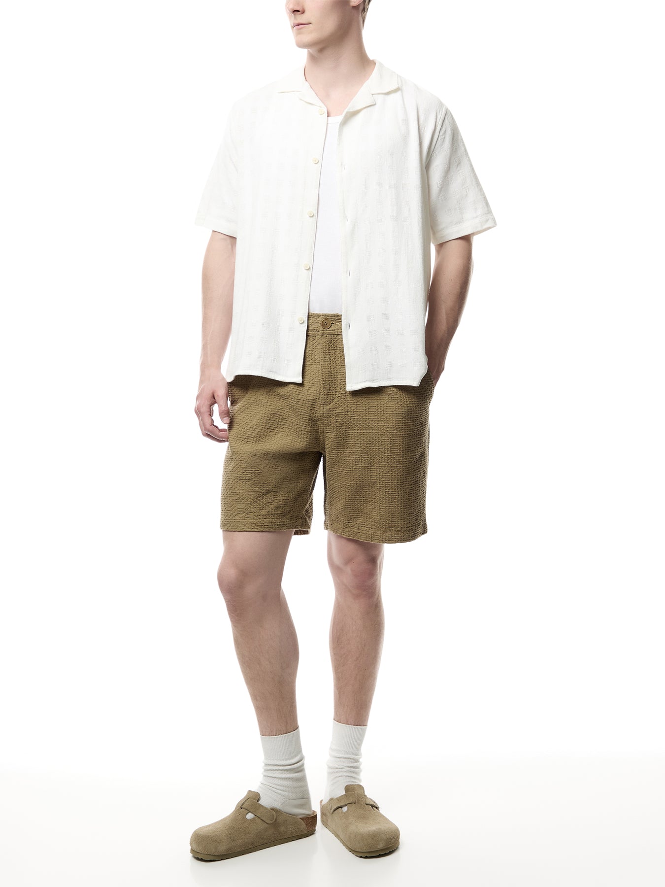 Didcot Ecru Open Weave Cotton Short-Sleeve Shirt