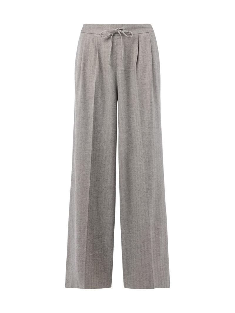 The Herringbone Wide Leg Trouser by Whistles builds structure through soft tailoring and a sharp, elongating line. The grey herringbone pattern introduces subtle depth without distraction. A contemporary base that grounds knitwear, shirting and elevated casual pairings.