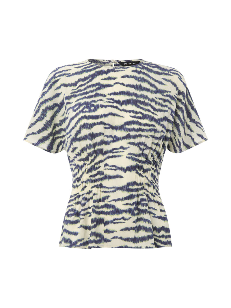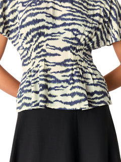 Ivory/Multi Feathered Tiger Shirred Blouse