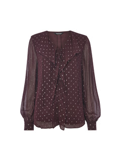 The Metallic Dobby Blouse by Whistles is crafted from lightweight chiffon woven with metallic dobby threads. Frill detailing and gathered cuffs create soft volume and texture. A contemporary interpretation of feminine eveningwear that captures Whistles’ refined design aesthetic.