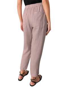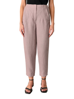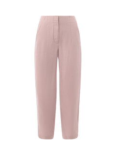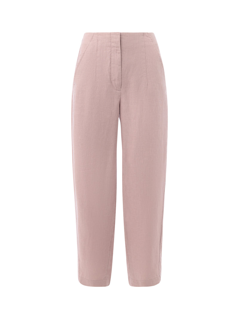 These dusty pink linen trousers feature a stylish barrel leg design, offering a relaxed yet tailored silhouette. Crafted from breathable linen, they provide comfort and ease, perfect for warmer days. The trousers are designed by Whistles, combining quality materials with contemporary fashion for a versatile wardrobe staple.