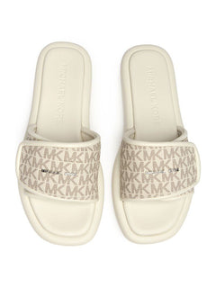The MICHAEL KORS Suki Sandals feature a slide design with a forefoot strap for a secure and comfortable fit. Combining ease of wear with stylish appeal, these sandals are perfect for casual, warm-weather outfits.